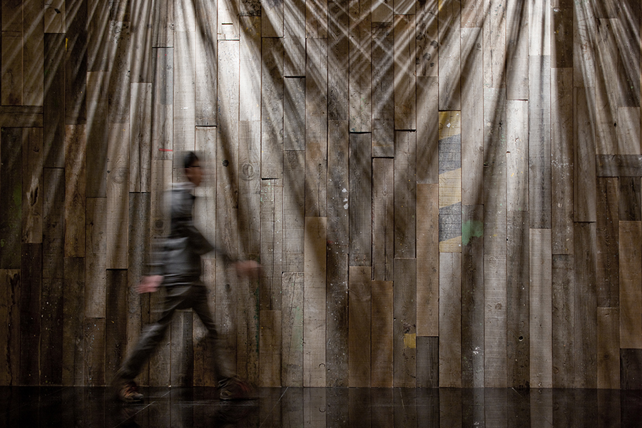 本案的主题除了原生态禅意之外,另一个重中之重就是环保:所有墙面没有过多的粉刷修饰,用经过特殊处理的旧木板代替了我们常见的乳胶漆或者壁纸墙面;会议室的隔断采用的是环保二手镂空木质隔窗;大厅没有使用传统的天花隔板,取而代之的是简洁优雅的细竹。走进叙品,我们闻到的不是刺鼻的油漆味,而是清新纯净的自然气息;感受到的不是办公室的呆板无味,而是自然的生机谐趣。