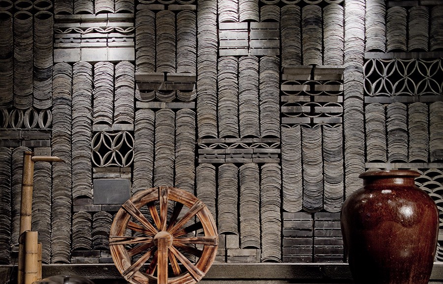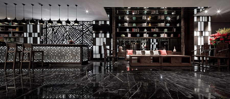 - 主要材料:爵士白大理石,原木做旧实木,青砖青瓦,黑色花岗岩等
