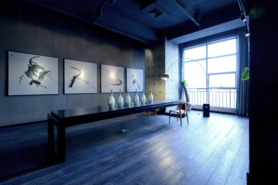 新颖的黑色鸟笼灯、玲珑的中式木格、沉稳内敛的中式家具、布满书柜的书籍等等,这些的结合营造出一个时尚与中式的相互渗透,不拘泥于传统中式的条框,又不失传统的内涵,带着点点禅意,宁静中张扬着活力的办公空间。我想,在这样宁静致远而又韵富张扬内敛充斥的空间内,不管是设计师还是访客可以激发内心的灵感或得到心迹上的一片宁静。