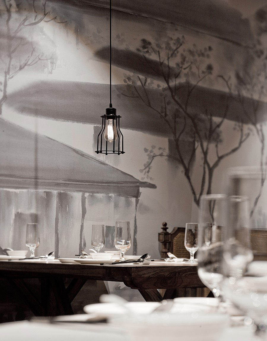 工业风格的黑色铁艺小吊灯似曾相识,有一种小时候家里吊灯的味道,与周围的环境相互呼应着。靠窗的散座区做了一个抬高,很好地划分了空间的区域。