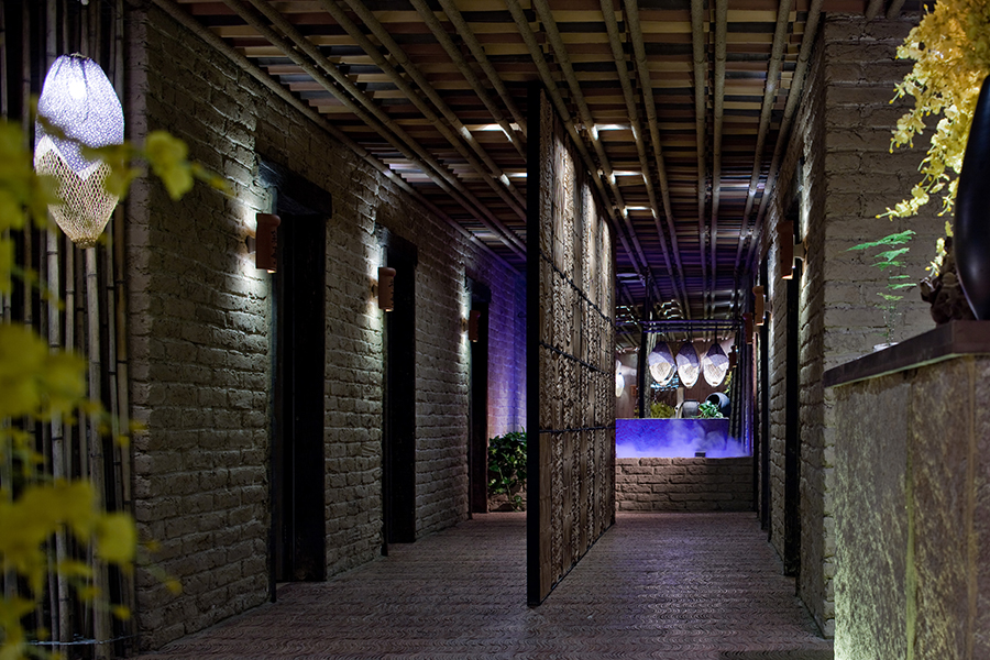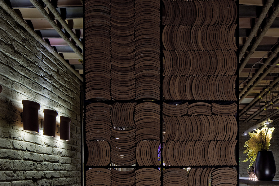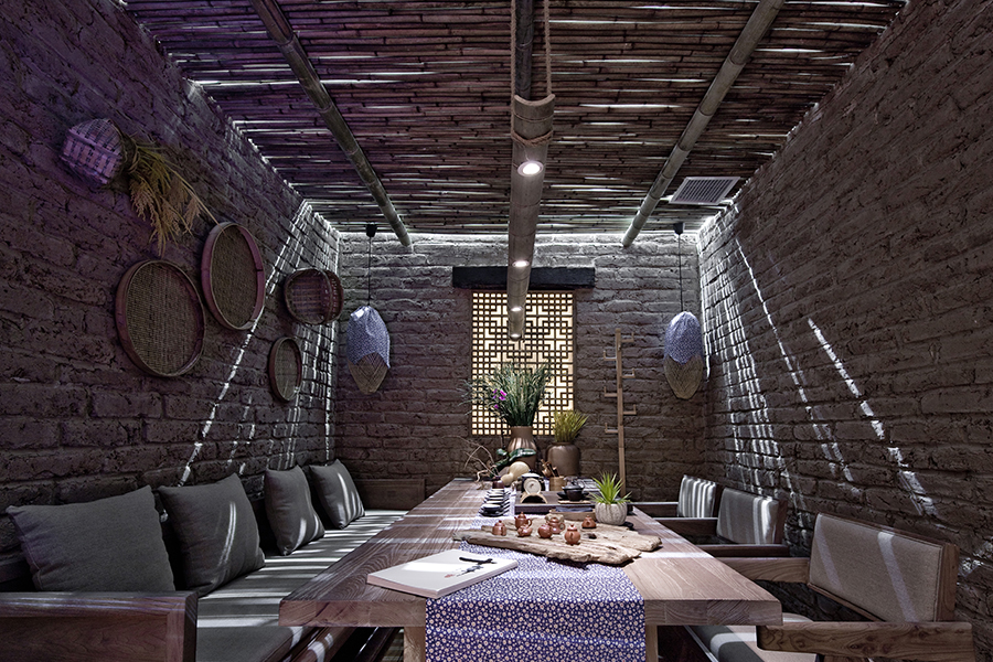 - 主要材料:土砖,竹子,红瓦片,做旧实木板,木拼条,竹编灯