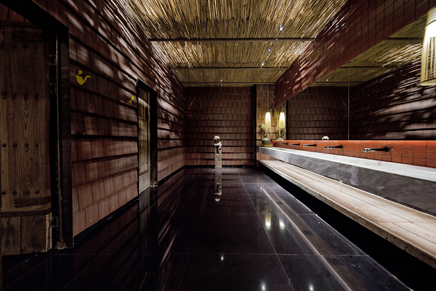 原木的简约大气与会场的商业需求不谋而合。没人的时候这里是一幅静谧的江南水墨画,有人的时候这里是动态的剧场,演绎出不同人生感悟。