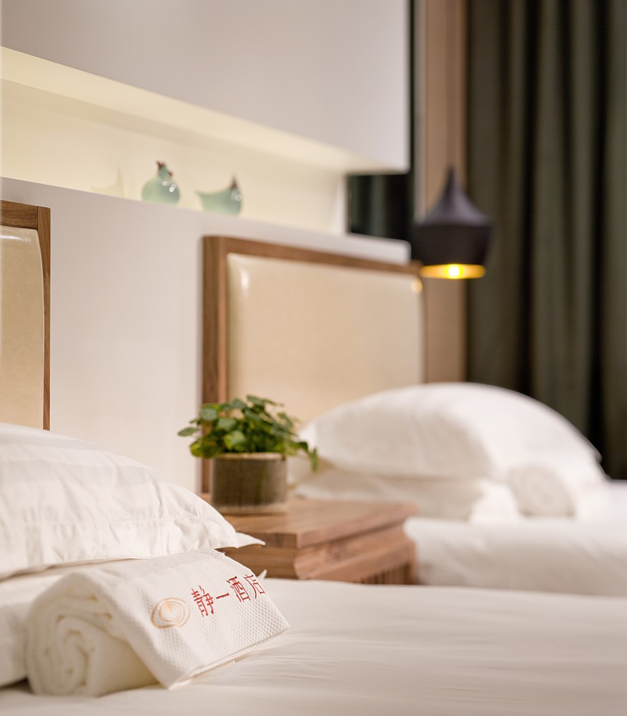 整个空间古朴、素雅,砖瓦等原生态材质带来朴实简练之美,方管、镜等工业风元素,为空间注入现代气息。从酒店客房到餐厅,每一处设计,每一处线条和灯光都匠心独具。置身其中,仿佛能感受到恬淡自然的生活哲学在安静生长,并外化成一种禅境、一份简约中透着雅致,不动声色又让人流连忘返的静态之美。