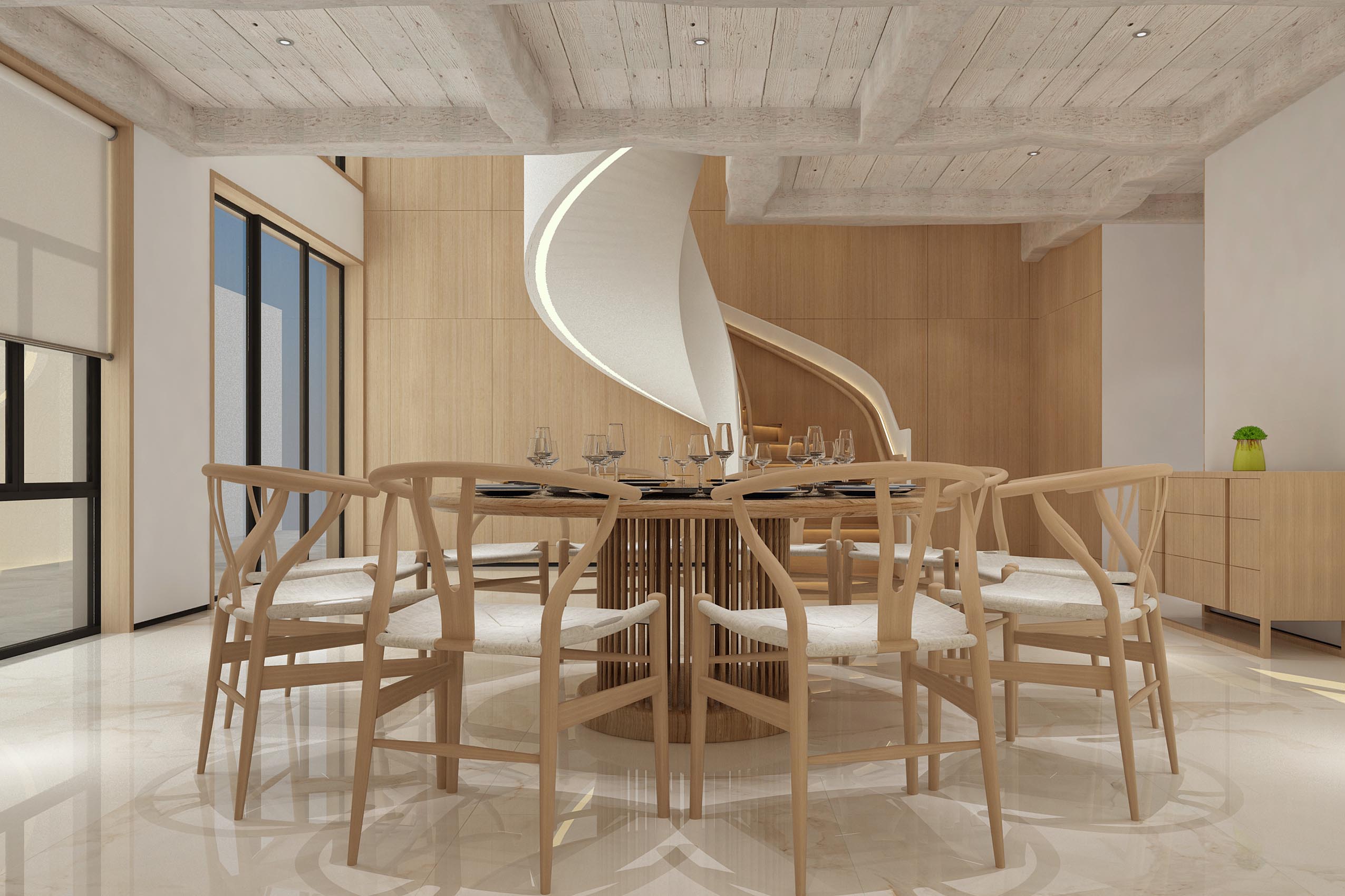 在这个富有力量的空间中,旋转的楼梯如舞者一般,是如此的翩若惊鸿,婉若游龙。