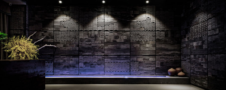 整洁有序的排列将自然而古朴的粗狂瓦片围合