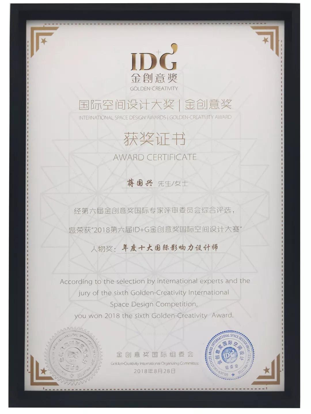 - 2018-04-02 17:31:41 大奖来了!蒋老师荣获法国双面神奖“年度TOP1最具国际影响力著名设计大师奖”