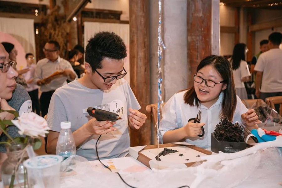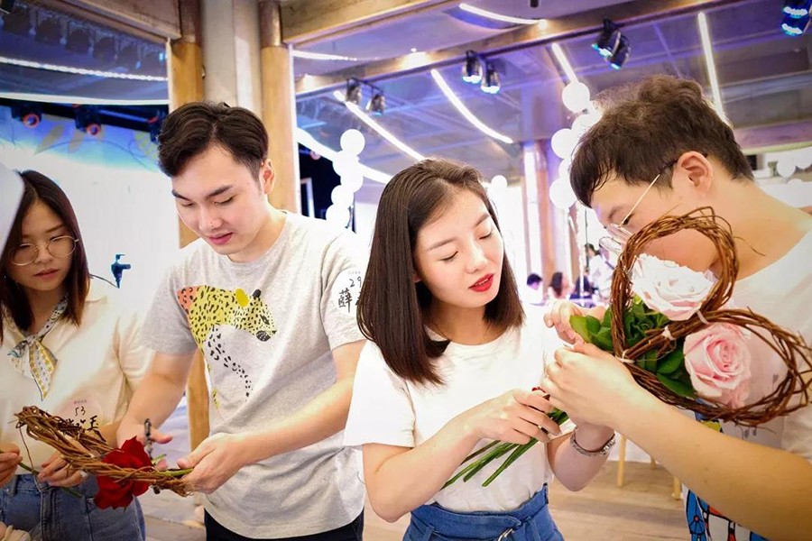 活动共分为5个环节,包含了当下年轻人喜爱的各类元素,分别为“青听”“青诉”“青舞”“青旅”和“青春”。 男女青年两两组队,通过交流对话、才艺展示、游戏互动等环节,展示了花桥多元化、包容性的文化特点。活动结束后,青年们还互相交换了礼物,结下了友谊,并共同欢唱了《龙的传人》。